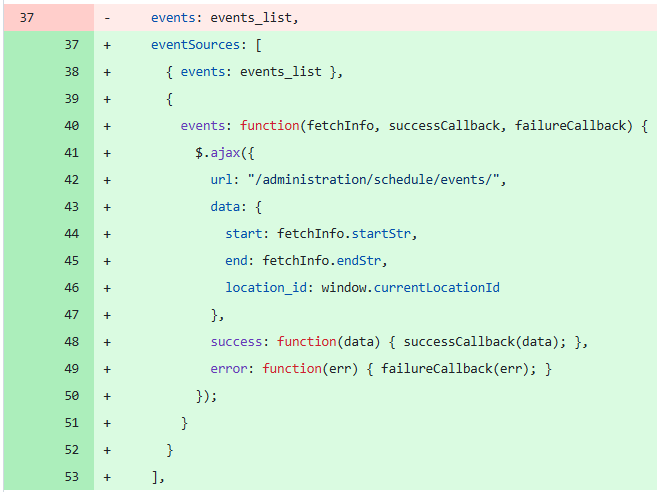 ScheduleEvents is the endpoint created to populate the Schedule page calendar with the skeleton Event database model. It receives a start date, end date, and location from the front end and returns a list of events as a JSON response. It seems to have decent error handling. But where it does the event filtering, we’re seeing a small problem: