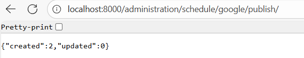Finally, the returned value of this endpoint is the JSON indicating the successful creation or update of Google Calendar events. Remember, when the user enters the workflow, they are taken to a plaintext page displaying this JSON.