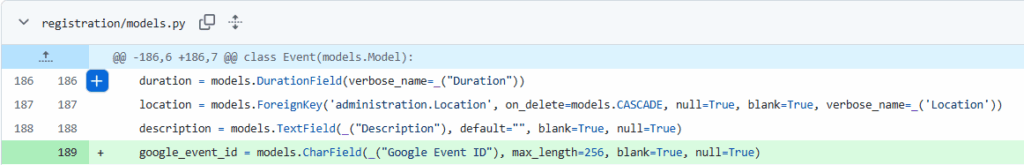 In order to synchronize & update events between Ruoom and Google, the LLM thought it necessary to add one new property to our Event model: